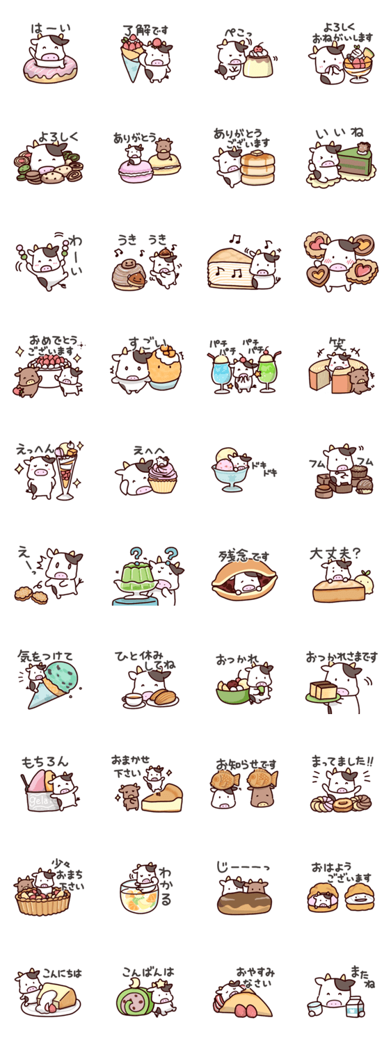 ウシの日常色々2(スイーツ) -LINEスタンプマニア