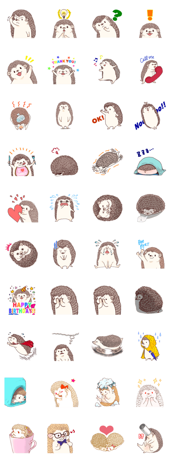 | スタンプ説明 | 99%のツンと1%のデレで構成されているハリネズミ、たわしとその仲間達がスタンプで登場☆ハリネズミ飼いの人にはあるあるでお馴染みのあの動きもあるよ!! |