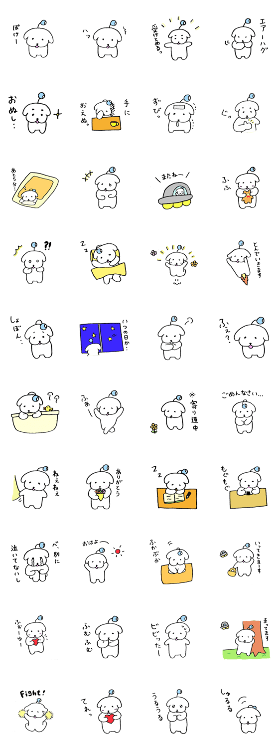 宇宙から地球にやってきた「宇宙人」ではなく、「宇宙犬」という名のほのぼのスタンプです。