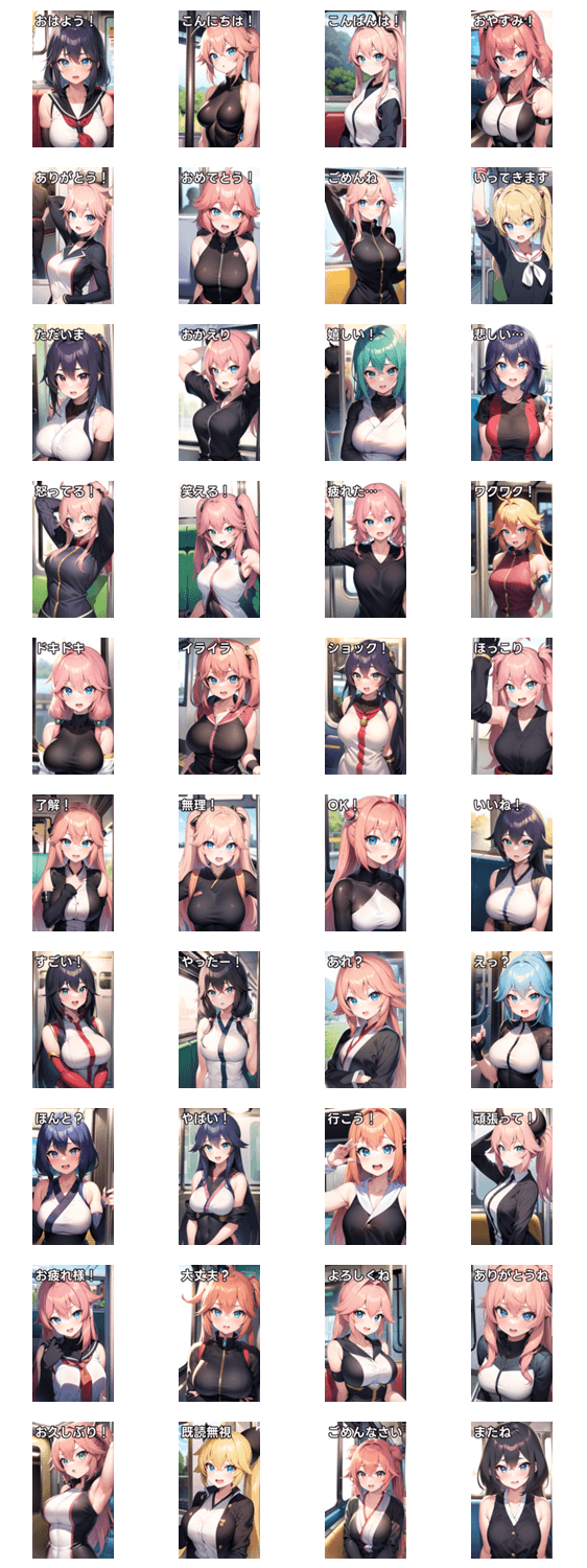 電車に乗っているコスプレ女子です。 ※このスタンプはトークルームで大きく表示されるBIGスタンプです。