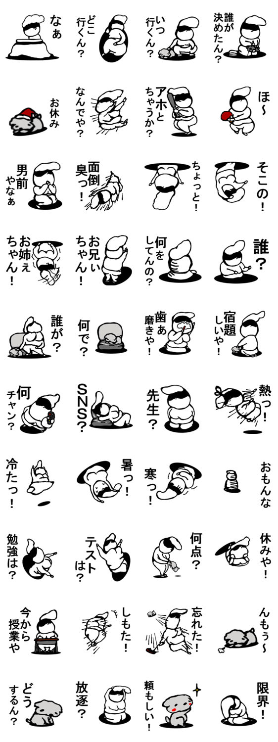 「オカンの水彩画スタンプ」に続く「白いオカンのスタンプ」しろいおかんが四方八方から現れます。母は愛犬の”的場ちゃん”を猫かわいがりしている癖にたまに忘れます。