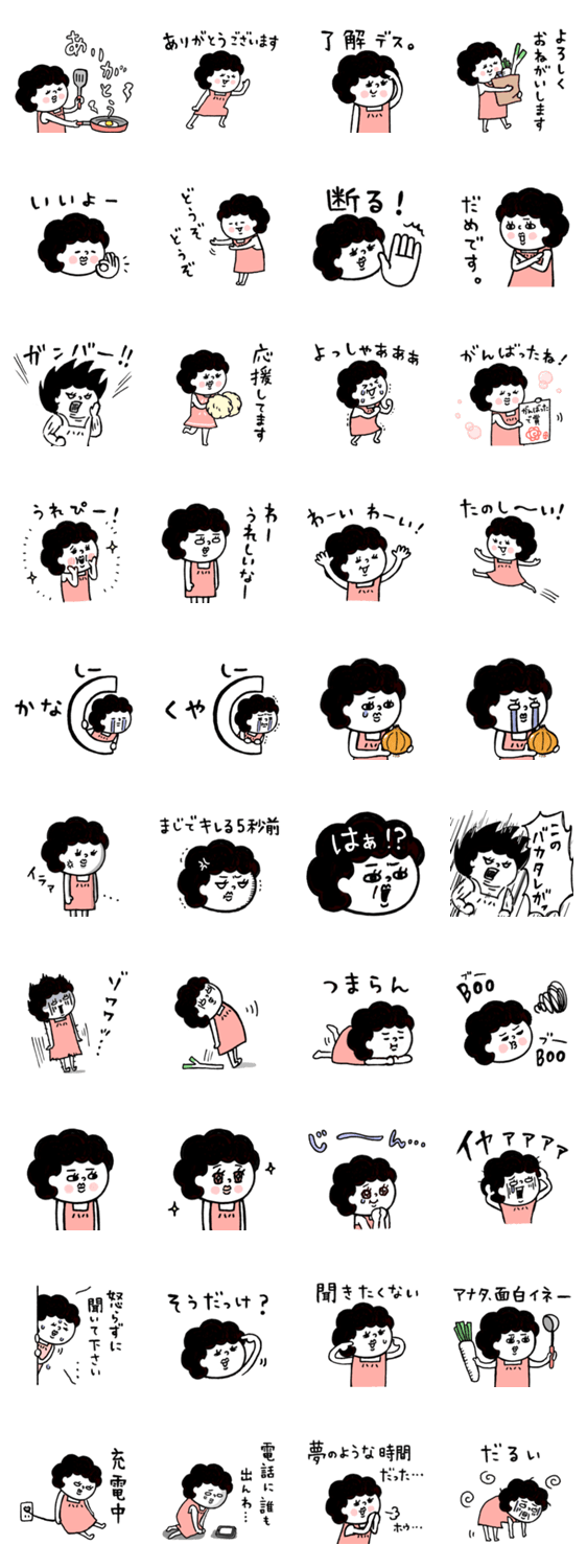 母さんの感情多めのスタンプセットです。 家族/親/応援/子供/シュール/カジュアル/