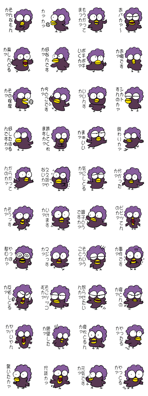 人の言葉をペラペラ話すキャベツ頭のおばさんカラスのスタンプ。