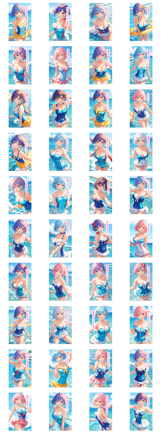 夏の海を楽しむ水着の女の子BIGスタンプ -LINEスタンプマニア