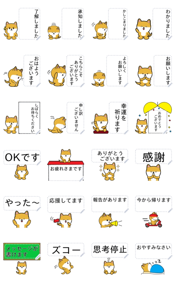 犬のメッセージスタンプです。 「毎日使えるスタンプ特集」参加しています。 現在この商品は一部のスマートフォン版LINE 10.3.0以上のトークルームでのみ使用できます。動作環境の最新情報はヘルプをご確認ください。