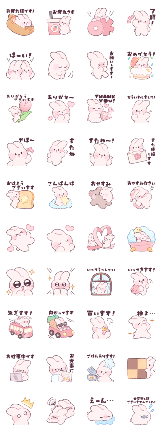 桜色の可愛くて元気なうさぎたちのスタンプです。兎/ウサギ/ピンク
