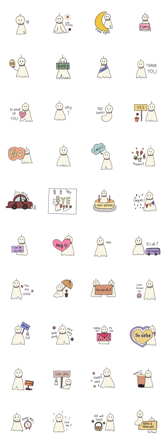 | スタンプ説明 | "Your Teru Teru" is a sticker that serves as a charm to ward off bad things. The concept is that the Teru Teru will protect the person who receives the sticker. |
