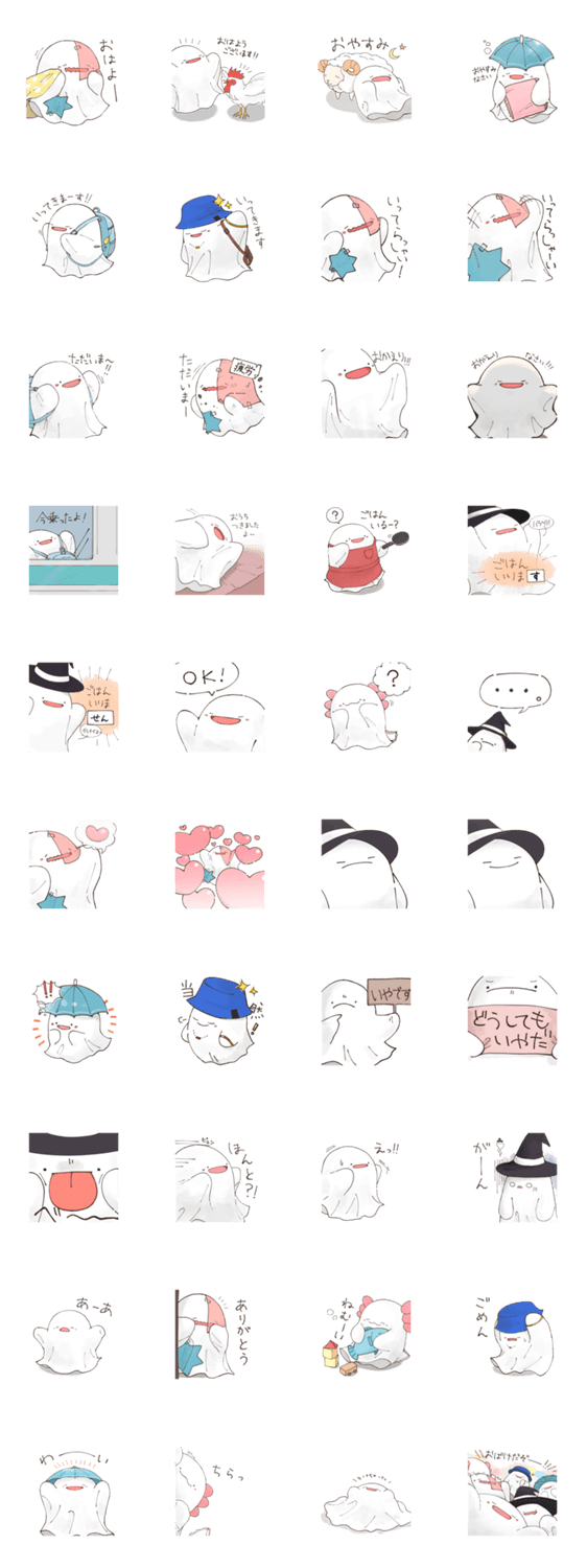 元気いっぱいな優しいおばけたちのスタンプです。彼らが何者なのか、実際のところは誰も知りません。