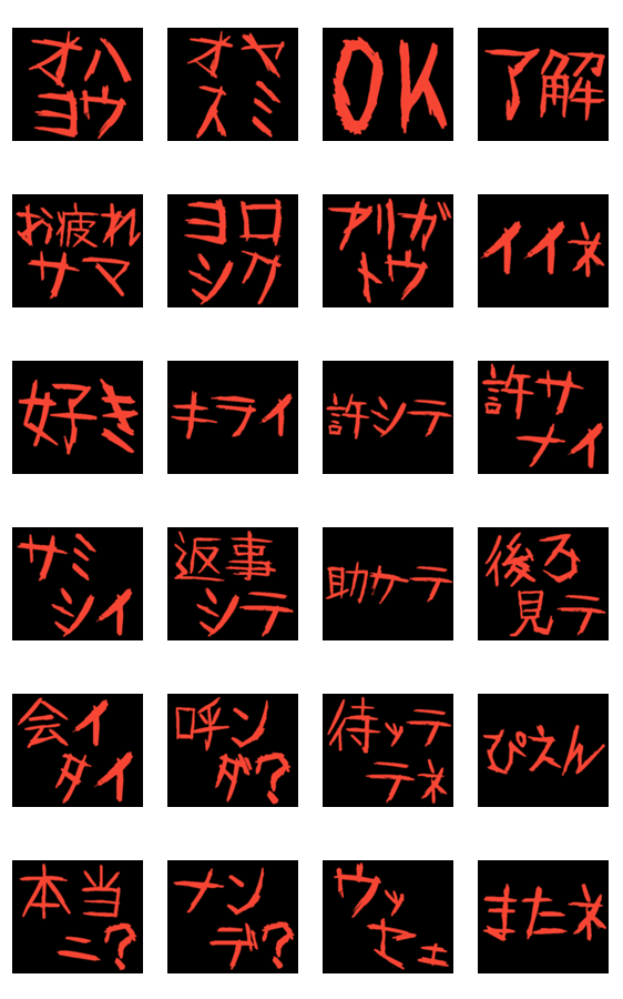 【ポップアップスタンプ】ホラースタンプ/怖い/恐怖/寒い/オバケ/幽霊/鬼/驚く/血/閲覧注意/グロい/呪い/砂嵐/術/煽り/滅したい/カオス/メンヘラ/地雷/面白い/ぴえん