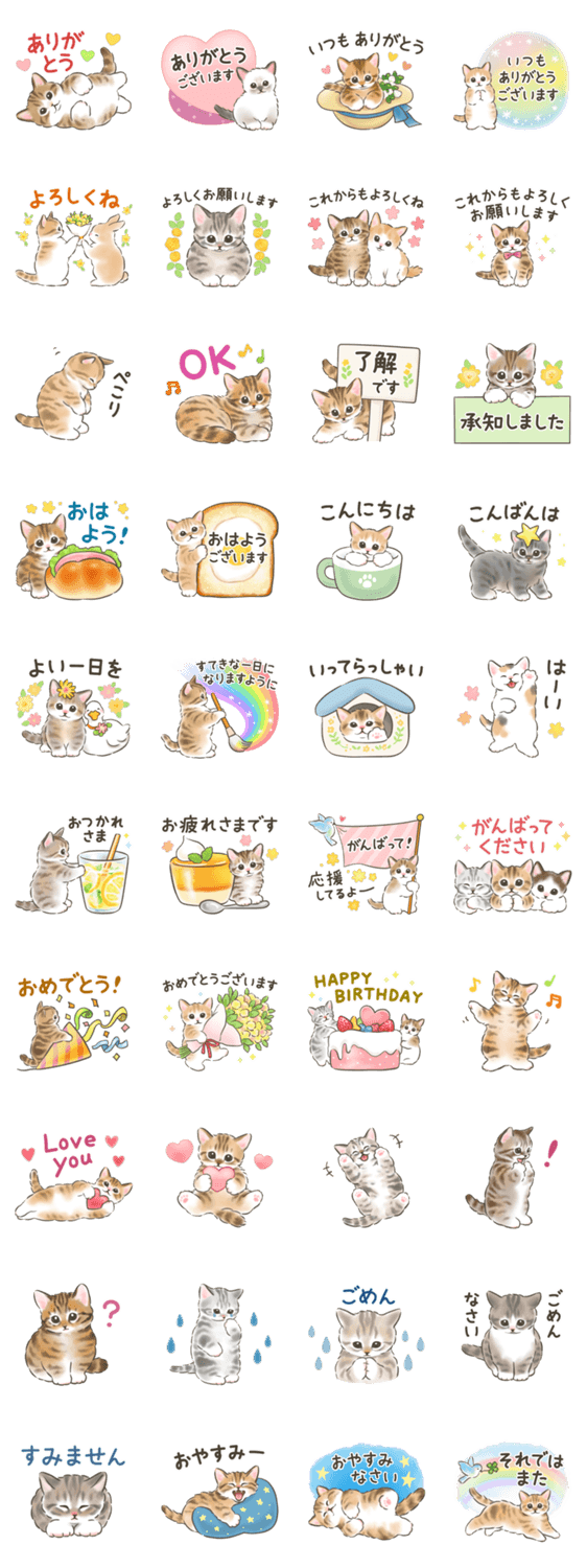 ふんわりかわいい猫たちの毎日使えるスタンプです♪(敬語/挨拶/日常/水彩/ねこ)