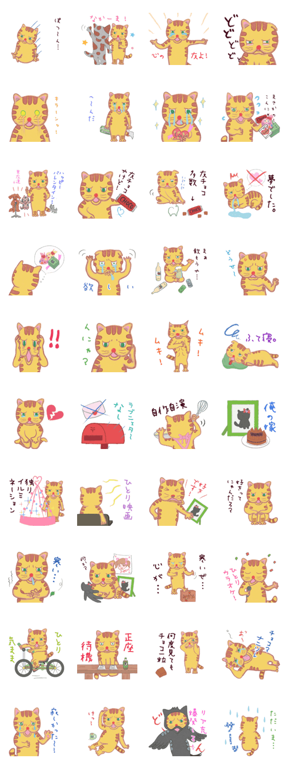 アトリエ・ナカタが手がける猫キャラクター「玄関ねこ」から“ぼっちバレンタイン”など、ちょっと卑屈な目線のバレンタインとホワイトデーに使えるLINEスタンプです。