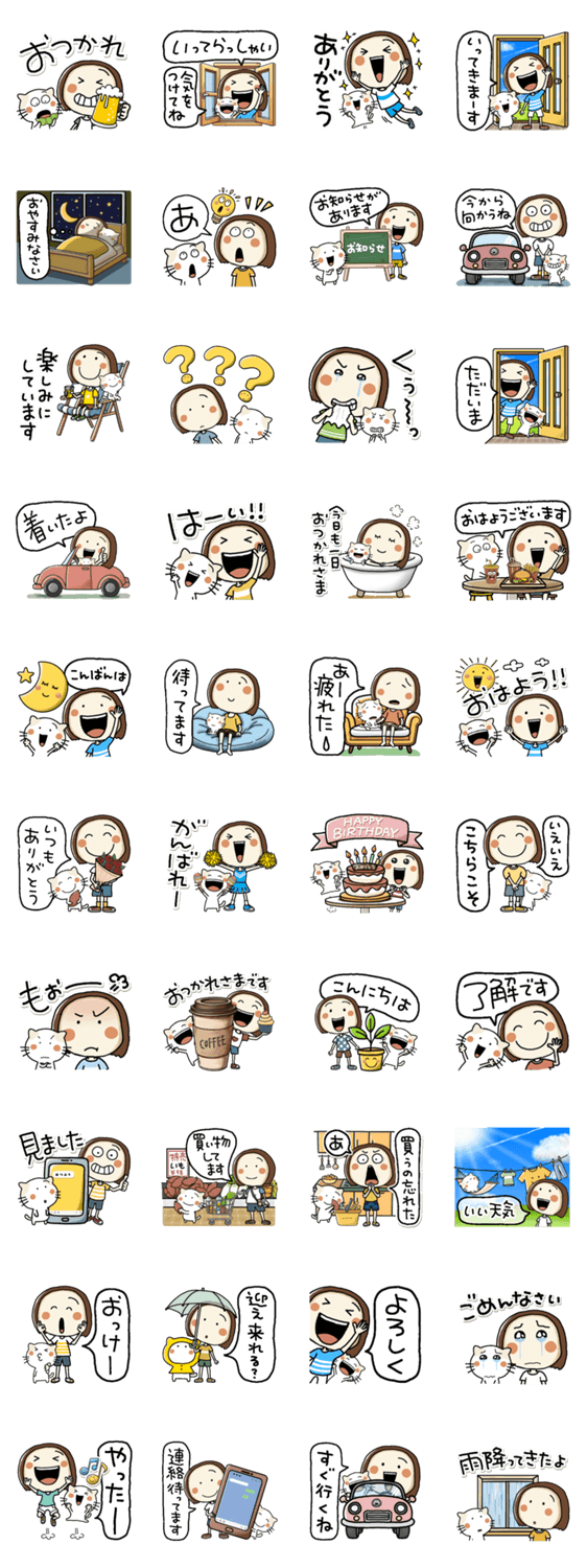 表情豊かな楽しいらんちゃんとにゃ吉の毎日使える日常会話。使いやすいあいさつがいっぱいです。