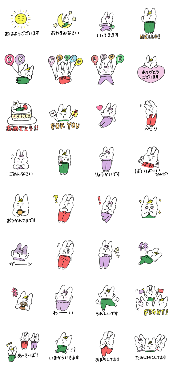 ハイウエストなうさちゃんと仲間たちのスタンプです