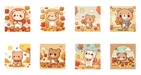 紅葉狩りを楽しむちびキャラクマちゃん -LINEスタンプマニア