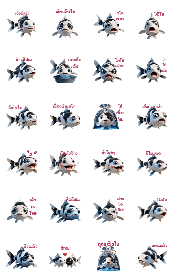 | スタンプ説明 | Stickers of the Shiro Koi species in various poses and emotions. |