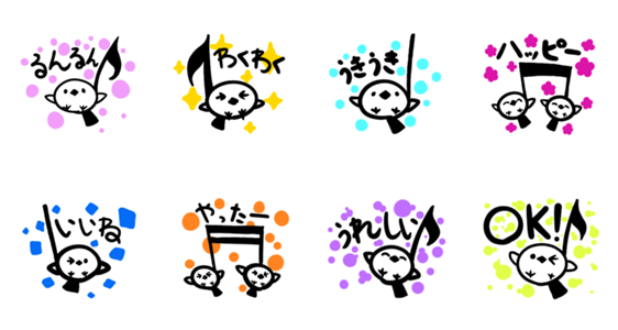 音符シマエナガの8個のスタンプです。日常生活で使用できます。
