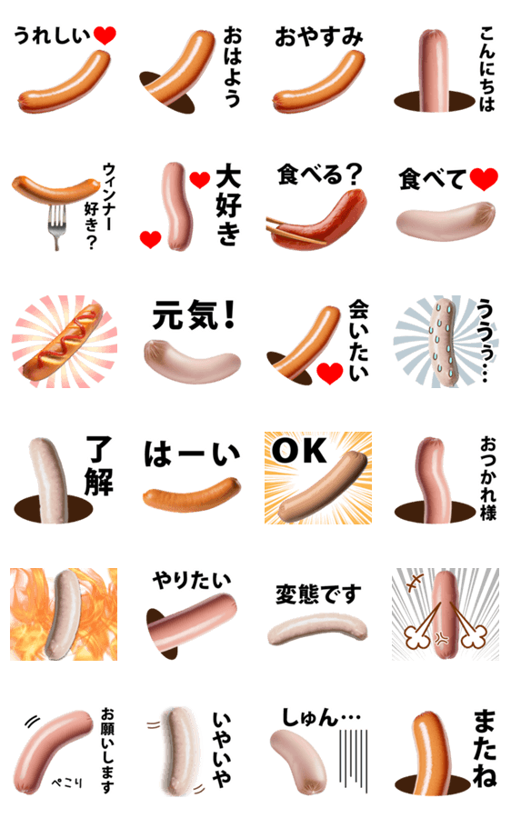 スタンプ説明 毎日使えるウインナーソーセージ❤️日常会話に❤️
