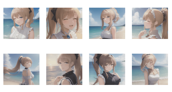スタンプ説明 可愛くて、美しい、海と女性のスタンプ