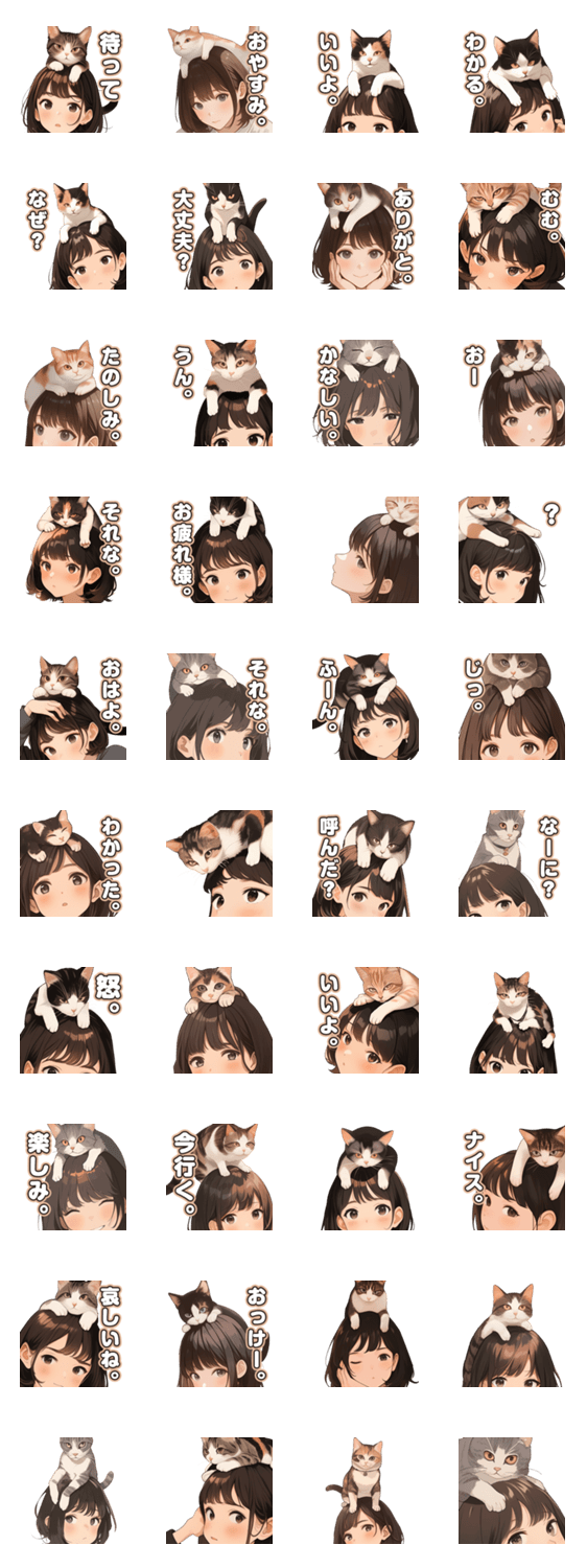 頭に猫乗ってる少女。その2 -LINEスタンプマニア