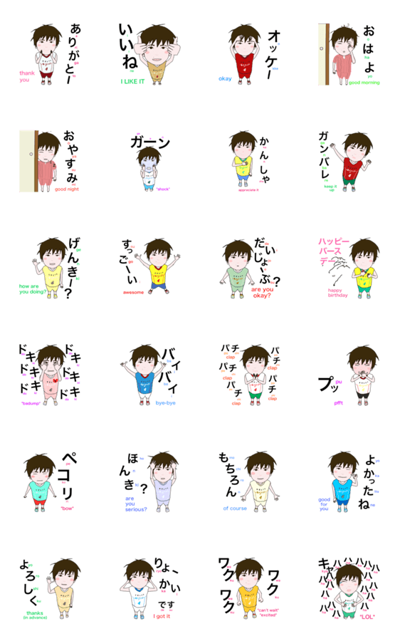 無邪気なジェスチャーで動くジー君スタンプ。お友達や家族と毎日楽しく使え、ほんわか気分を味わえます。デカ文字&英語表記もされています。ありがとう、いいね、大丈夫。