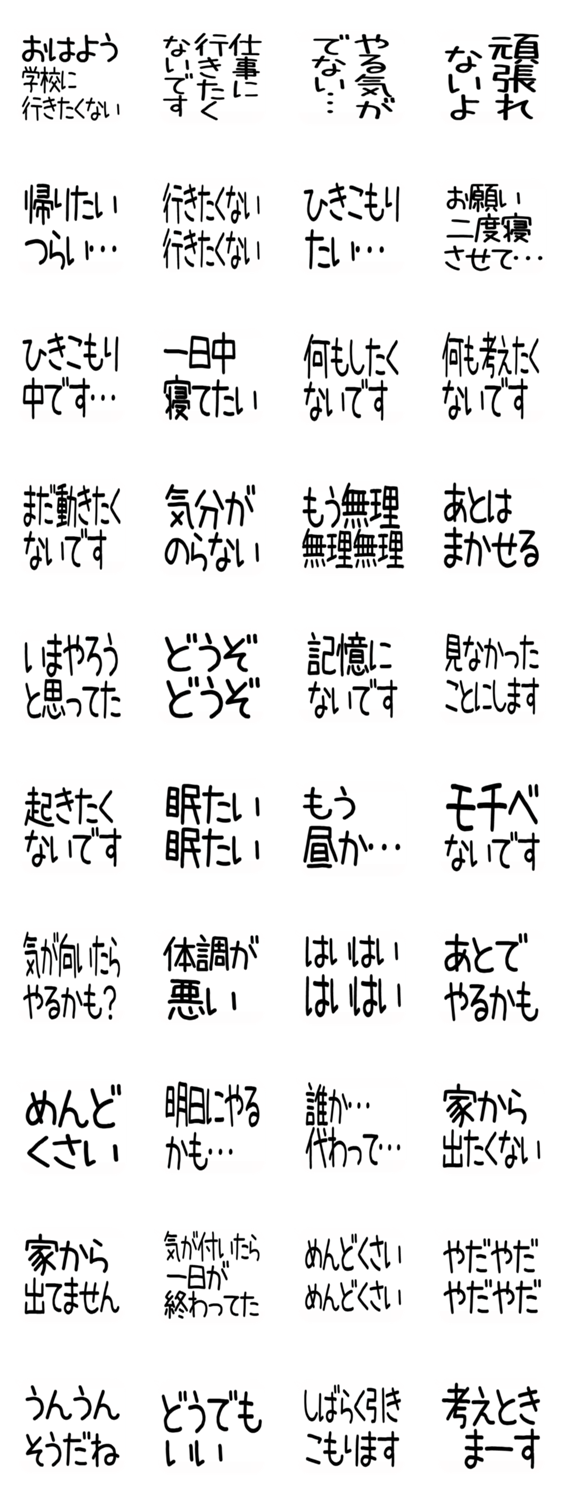 吹き出しスタンプ★引きこもりたい人の気持ちスタンプ★修正版★やる気ないまだ寝てたい部屋からでたくない人のスタンプです もるきゅた作