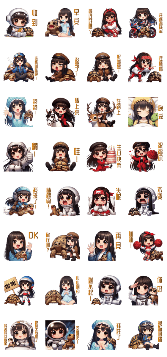 Girl and Her Pet Turtle -LINEスタンプマニア