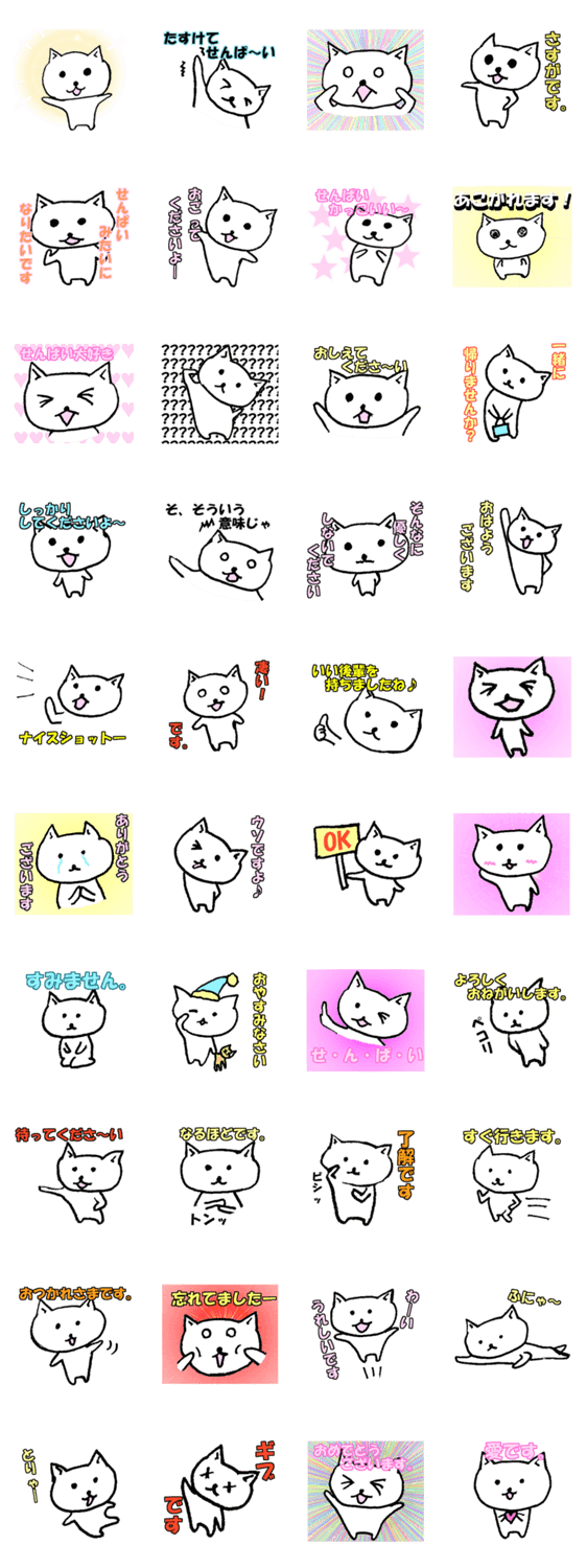 白ネコのあいうえお・・・ってるスタンプ