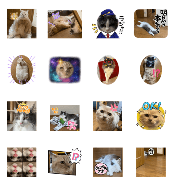 白ネコのあいうえお・・・ってるスタンプ