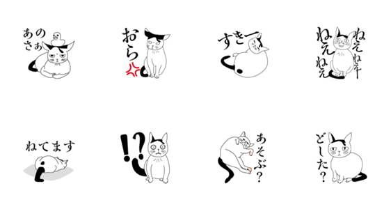 白ネコのあいうえお・・・ってるスタンプ