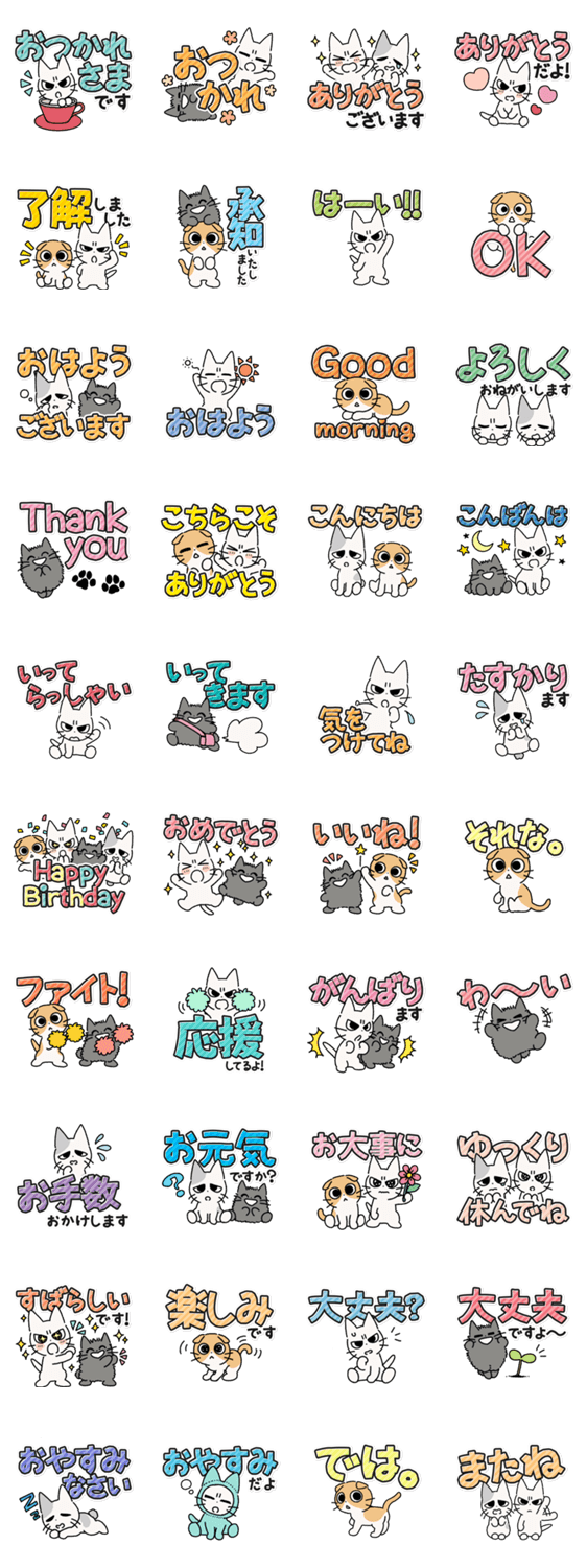 『しかるねこ』のスタンプ第30弾。今回は使いやすさに特化したセットです。文字が大きくキャラはちびっこい!『あまやかすねこ』『ながめるねこ』『うれうねこ』もいます。