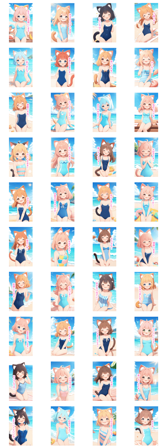 海で遊ぶ猫の女の子BIGスタンプ -LINEスタンプマニア