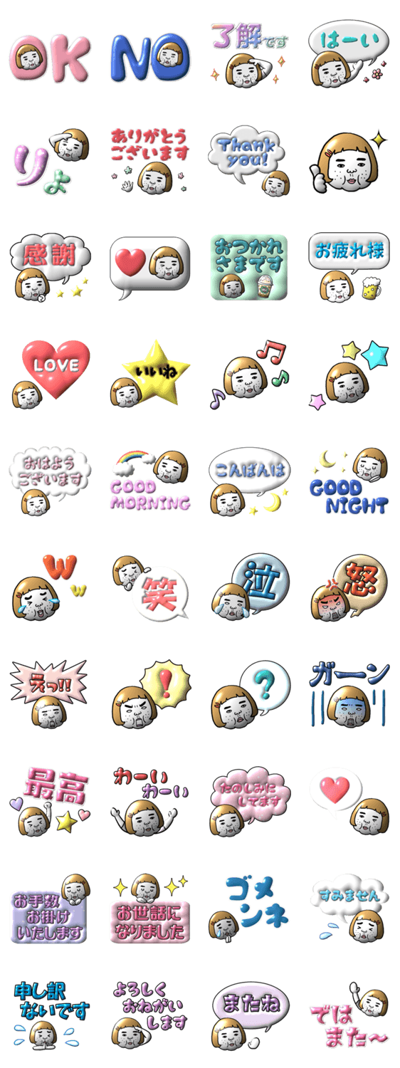 プックリとした立体感ある3Dシールスタンプ!日常会話や挨拶、恋人友達家族や仕事仲間に!ブサイクだけど愛嬌ある自虐大人女子ネタスタンプ!毎日使える!ラメでかわいい♡