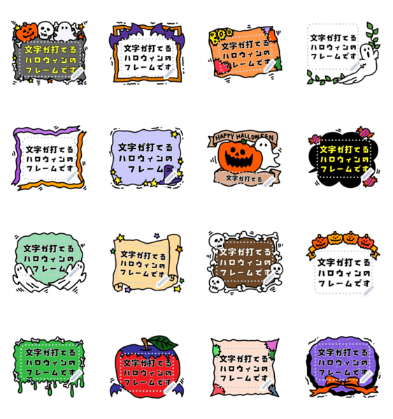 文字が自由に打ち込めるのでハロウィンやホラー好きさんは普段使いにも♪怖可愛いジャックオランタン・オバケ・コウモリ・ドクロ・骨・リボン・羊皮紙・古紙フレーム★ 現在この商品は一部のスマートフォン版LINE 10.3.0以上のトークルームでのみ使用できます。動作環境の最新情報はヘルプをご確認ください。
