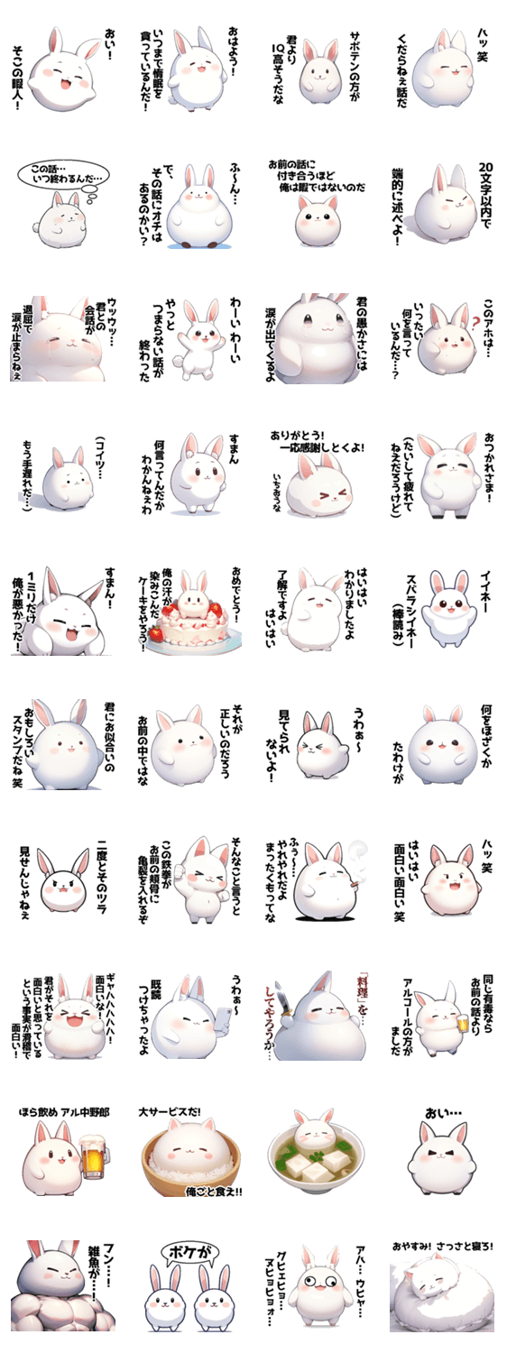 感じの悪いウサギのスタンプです。うさぎ、兎、ラビット、白い、丸い、しろい、まるい、兎年、煽り性能、毒舌、性格悪い、かわいい、可愛い、アル中、ビール。
