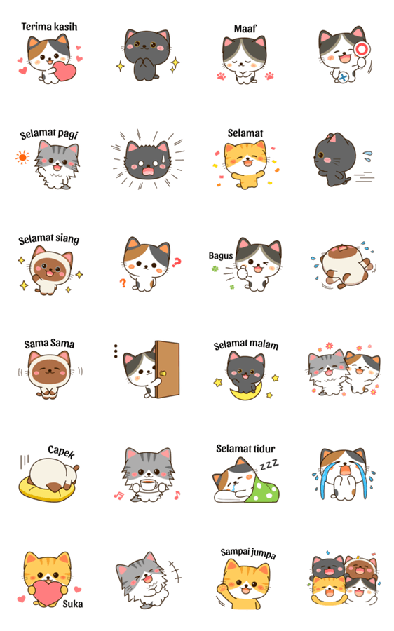 可愛いがちゃねこスタンプのインドネシア語バージョン♡