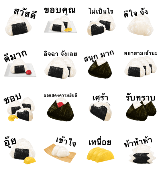 読み仮名あり!日本語付き! 食べ物/おにぎり/米/白ご飯/白米/塩むすび/梅干し/東南アジア/タイ/料理 可愛い/キュート/シンプル/面白い/白/ホワイト/黒/ブラック/赤