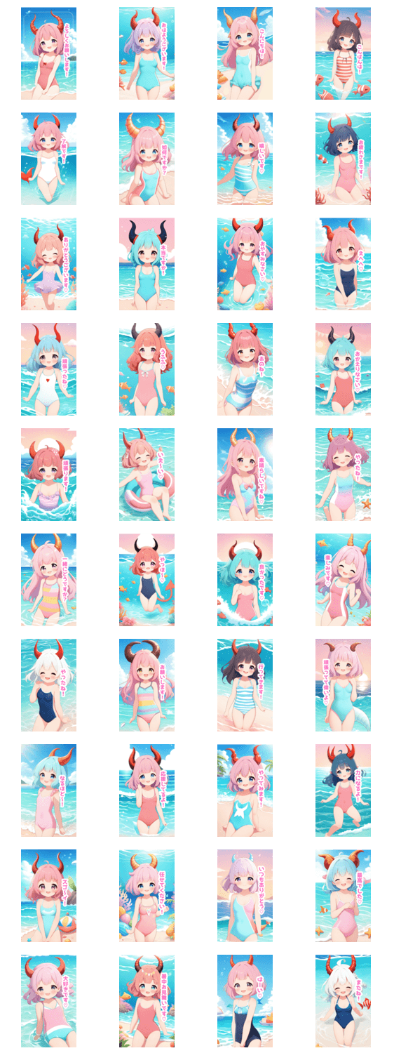 海と悪魔の水着の女の子BIGスタンプ -LINEスタンプマニア
