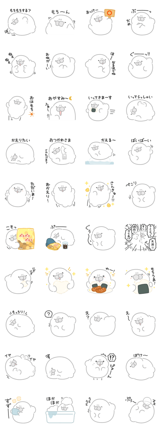 もっちりたぷたぷした生き物、もちたぷあにまるずの「もちお」くいしんぼうで食べることが大好き!(アザラシ、海豹)