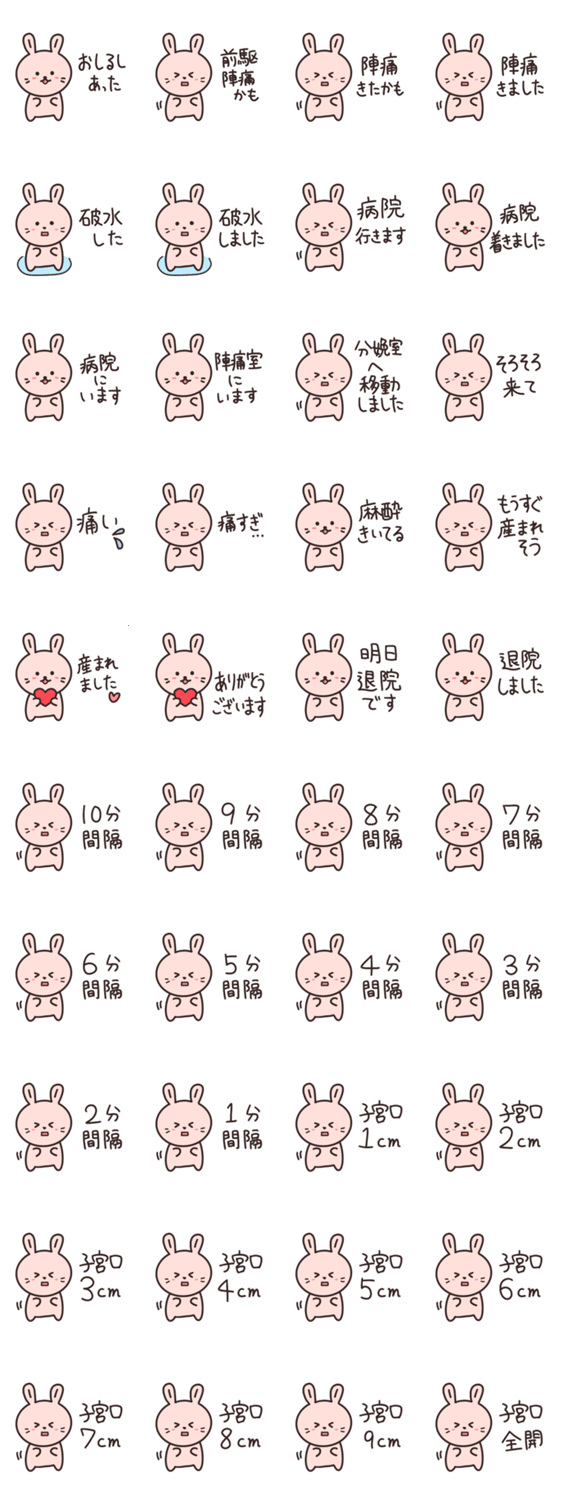 出産時に家族への連絡用に使えるスタンプです。 陣痛/破水/出産/産まれた/連絡/退院