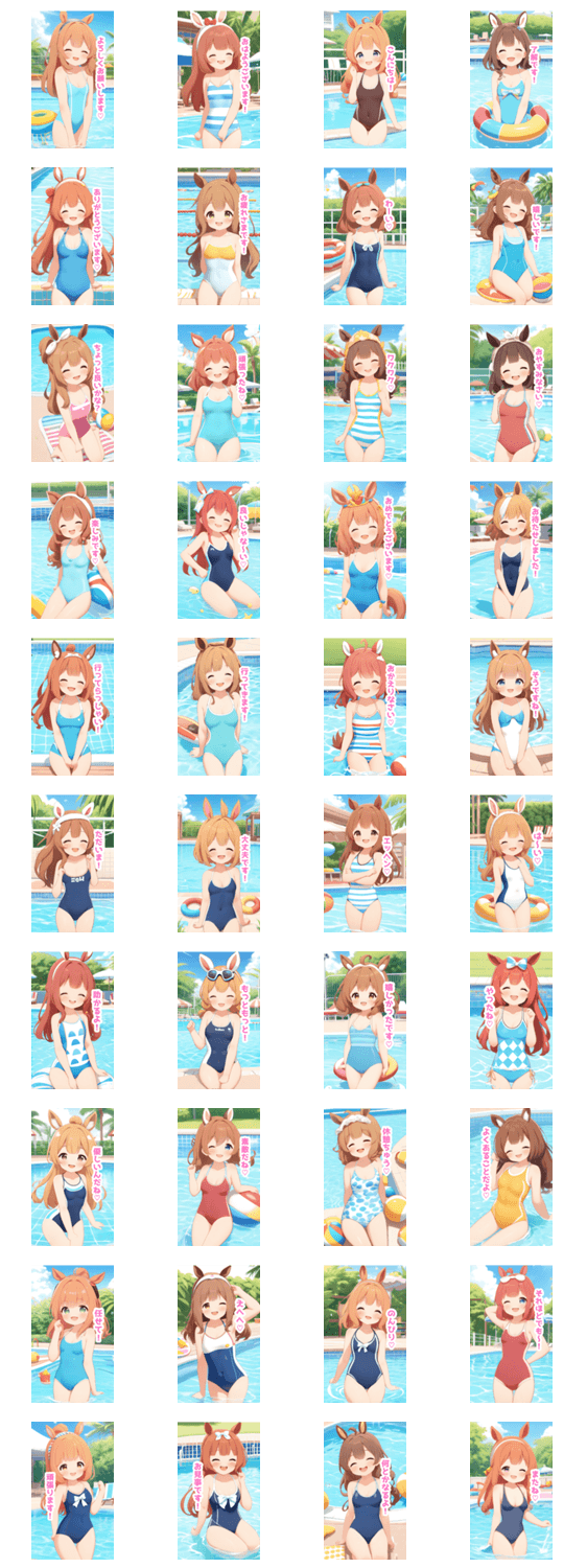 プールと馬の水着の女の子BIGスタンプ -LINEスタンプマニア