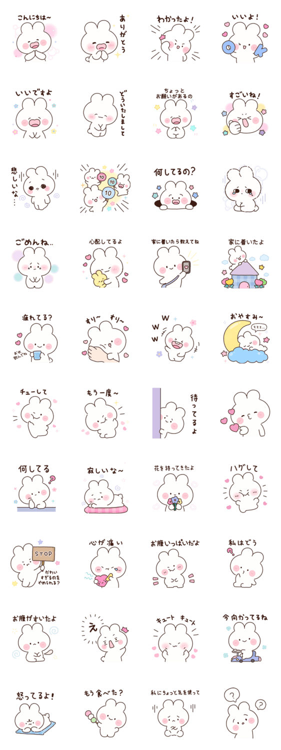 白ネコのあいうえお・・・ってるスタンプ