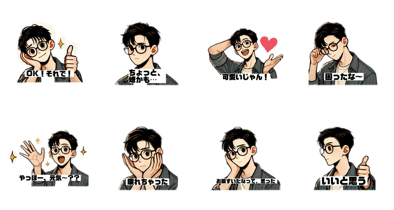 スタンプ説明 呑気なメガネ男子のスタンプ