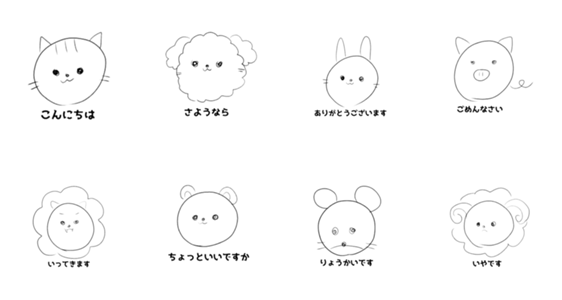 雑で可愛さを感じる動物と敬語のスタンプです。