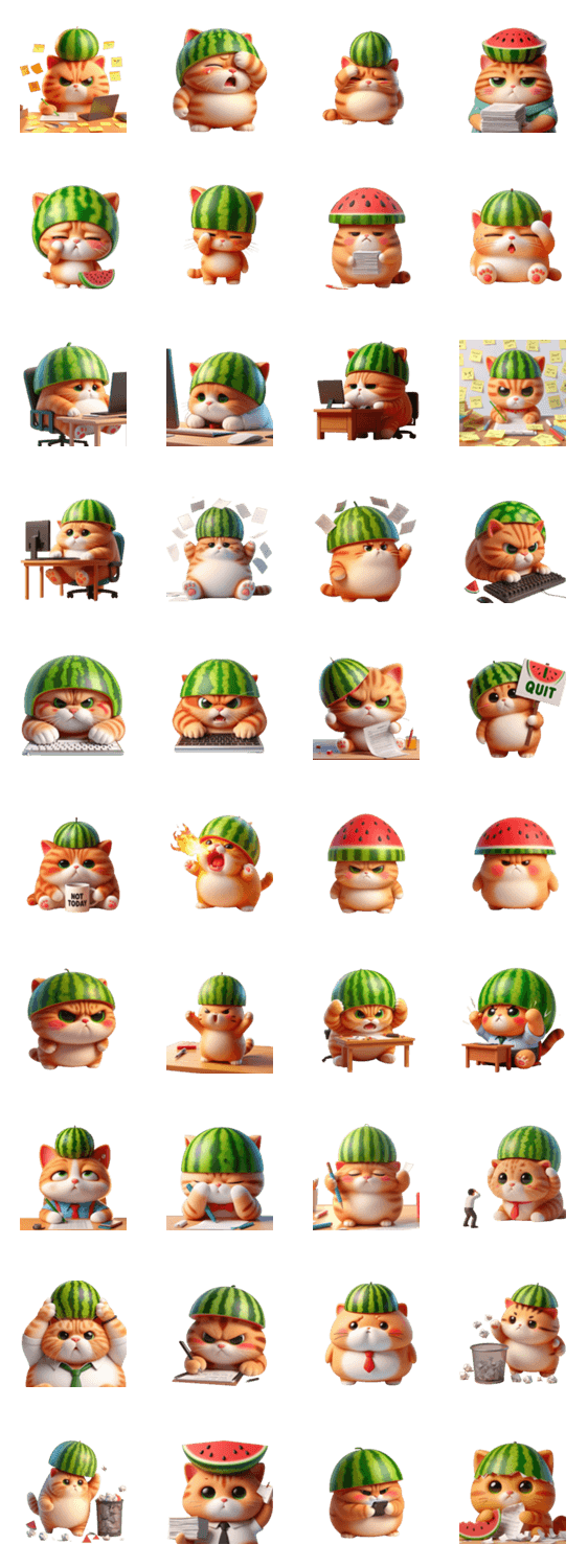 頭にスイカを乗せた猫は仕事に行きたくない -LINEスタンプマニア
