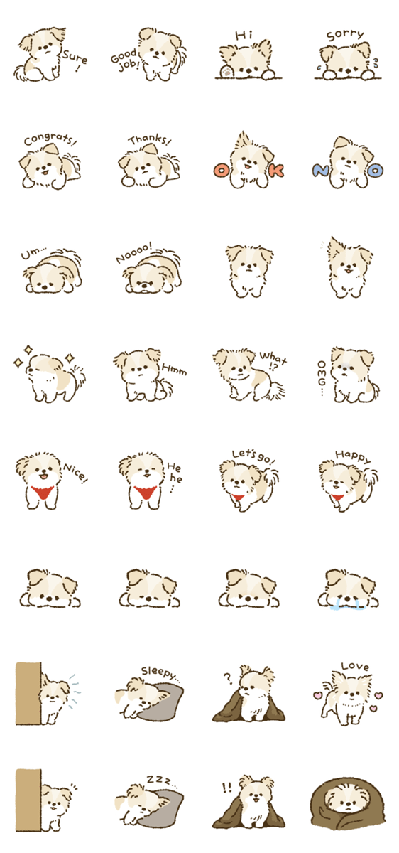 世界を救う可愛さ、シーズー×ポメラニアンのぽん酢ちゃん(英語)です! (飼い主さまは@yukainaponzuさん、作者は「まるちゃんとおはぎちゃん」スタンプ作者のかなです♪)