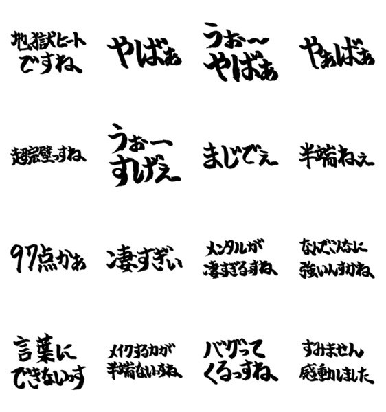 スケボーしてるとよく聞く言葉の筆文字です。大会でよく聞く言葉をさらにまとめました。まさに地獄ヒート!