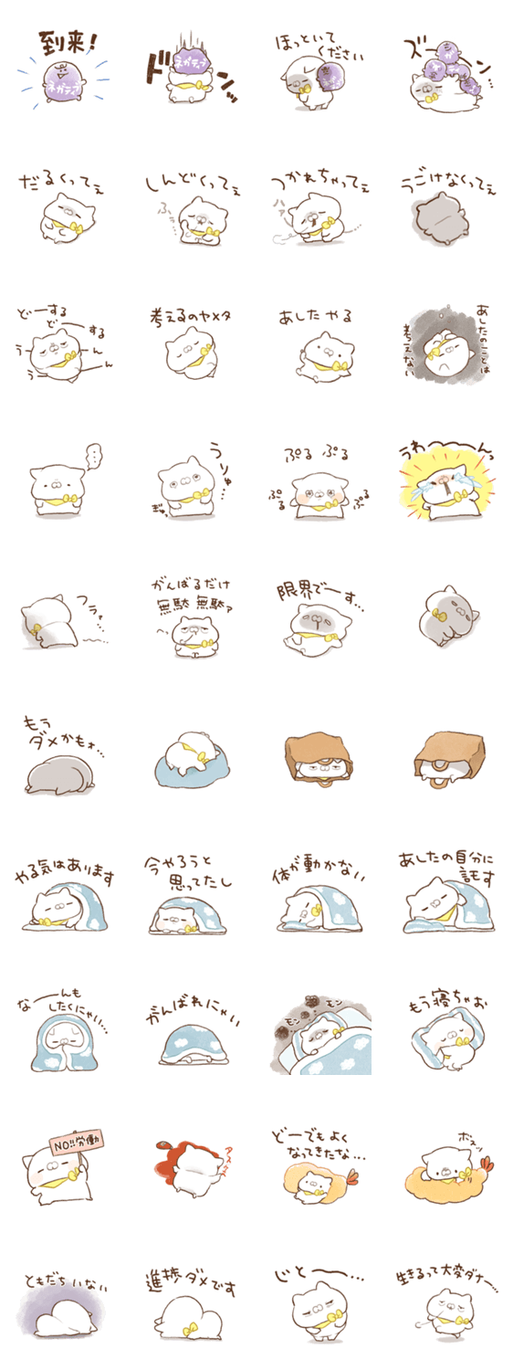ネガティブ第二弾♪いつもとは違うネガティブ姿なこどもにゃんこスタンプです。そんな時もあるよね。