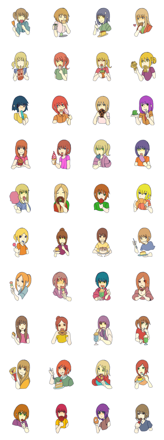 A stamp about girls who like sweets, candies, juices, all kinds of confectionaries.