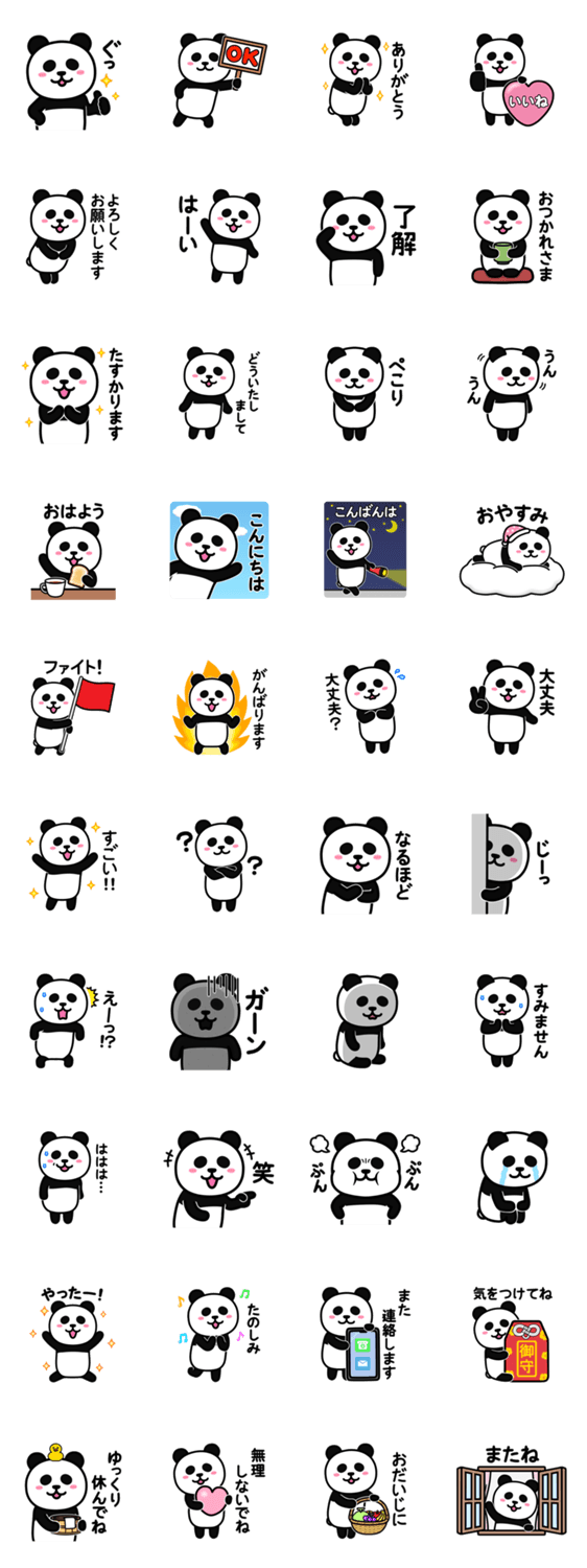 パンダのスタンプです。可愛い/かわいい/面白い/家族/恋人/友達/仕事/挨拶/あいさつ/気持ち/感情/リアクション/シンプル/無難/よく使う/使いやすい/便利/日常会話/年中