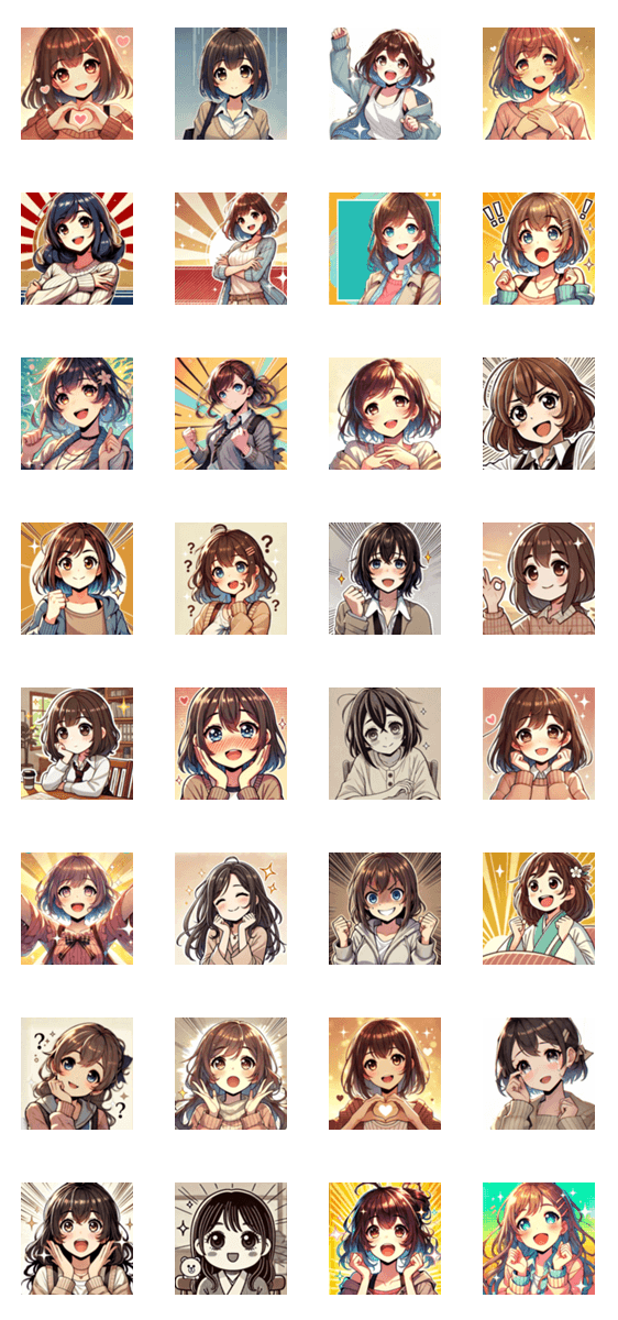 キラキラした彼女を描いたスタンプです。家族や友達に幸せな瞬間を伝えるのに最適です。